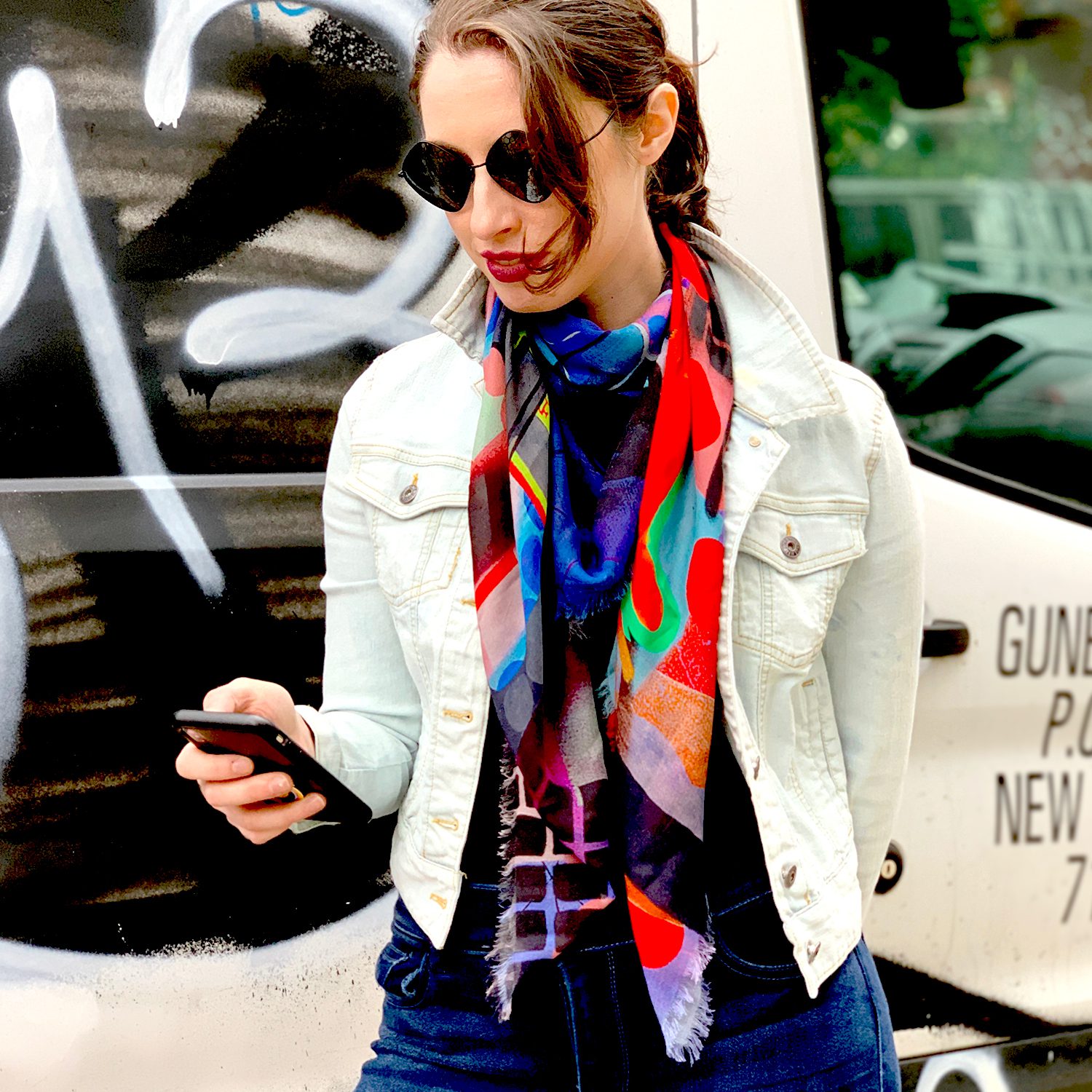 Tembo’s Modal & Cashmere Square Scarf is a luxurious blend of 90% modal and 10% cashmere. Measuring 45″ square, this scarf is soft, lightweight, and sustainably made from beech tree cellulose. The digitally printed design and 1/2″ fringe add style to any outfit, while modal’s eco-friendly properties make it a sustainable choice.
